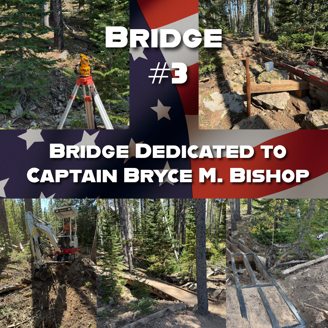 This special bridge on the Prospector Loop Trail honors Captain Bryce Myles Bishop and stands as a testament to service, legacy, and community love.