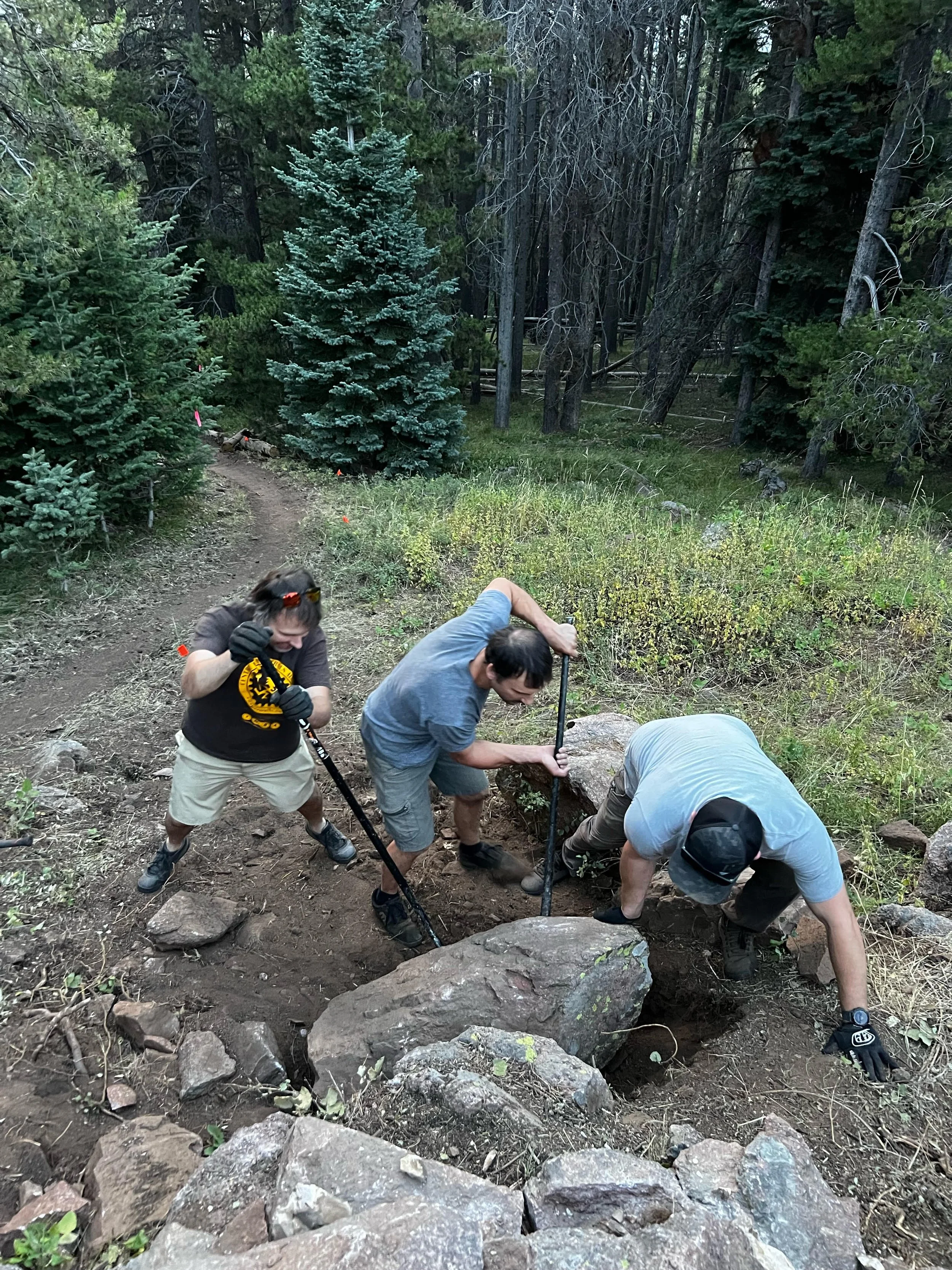 Yesterday we held our Monday night trail build with yet again great success. For the 3rd week in a row our high school and middle school racers (CAMBYR) were up providing labor on the trail we all enjoy. They were able to clear out slash and deadfall from one of the new trail corridors. We also had another small group working on finalizing the upper feature on the New Spillway trail. If you have not seen or utilized this trail we encourage you to give it a look! All of the current new construction trails are open for use.